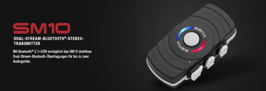 Der SENA SM10 ist ein Bluetooth® Stereo Audio Sender basierend auf Bluetooth 2.1 + EDR Technologie. Sie können damit alle Audiogeräte wie ältere Handys, MP3-Player / iPod, Radio, GPS / Navi, Radarwarner oder Motorrad Onboard Audio Systeme welche noch keine Bluetoothfunktion eingebaut haben trotzdem drahtlos mit den Motorrad Bluetooth Headsets von SENA oder jedem anderen Hersteller wie auch Cardo, Interphone, Schuberth, Midland usw. nutzen.
