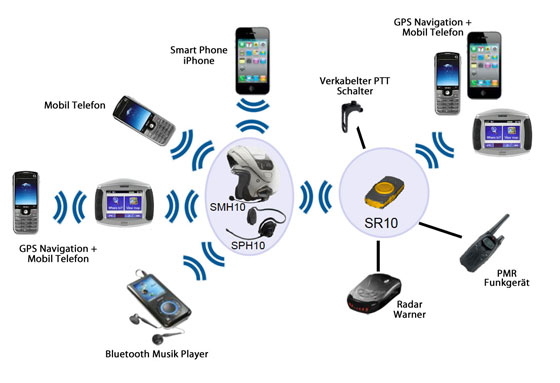 - Für Fahrlehrer (im Auto) welche ihren Motorrad Fahrschülern mit SMH10 Headset bestückten Motorradhelmen nachfahren